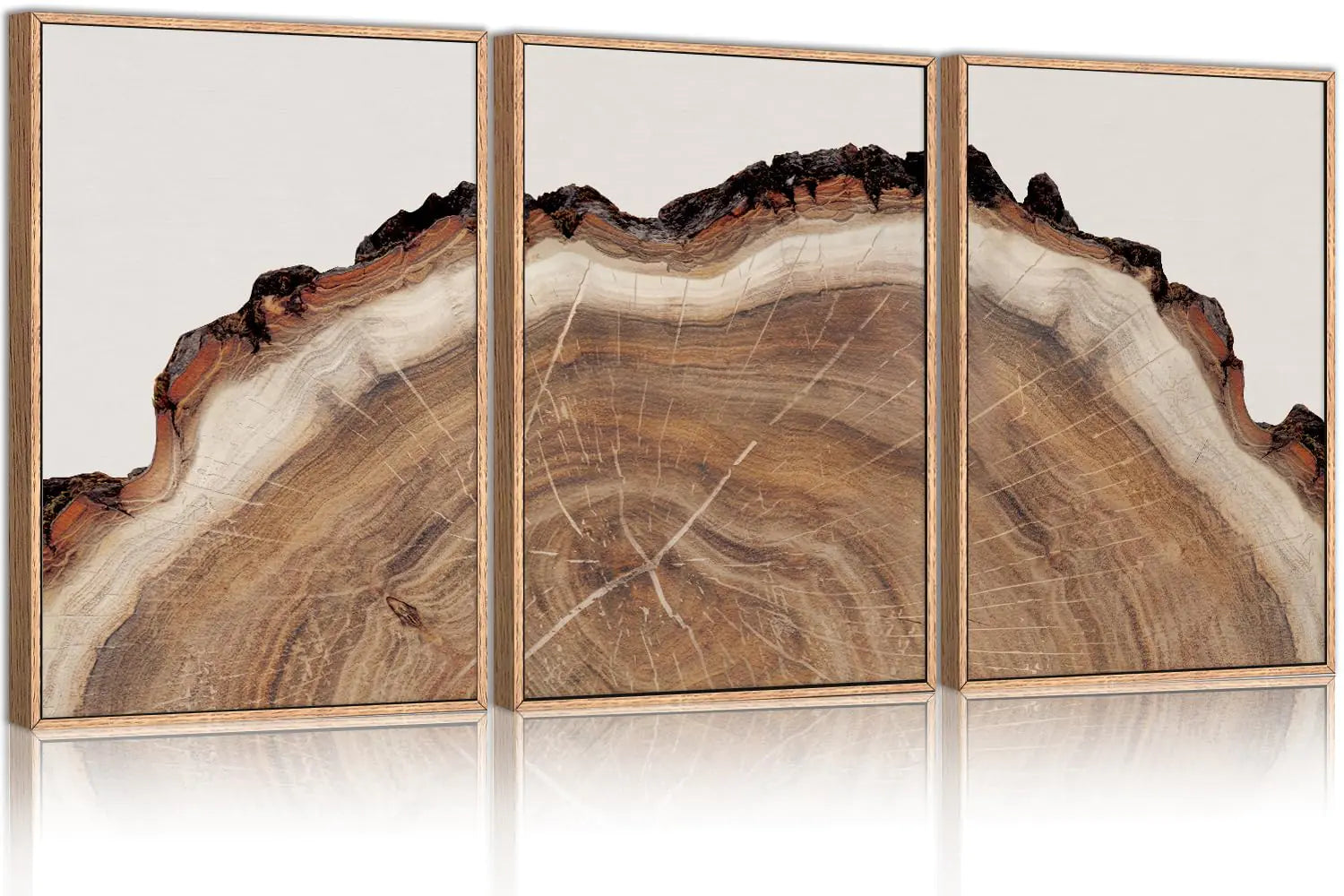 Framed Tree Rings Wood Wall Art Set Modern Beige Wood Stump Wall Decor Abstract Black and Gray Tree Spiral Wall PaintingNature-Inspired Art Print for Living Room Bedroom Dining Room Office-24"x36"x3