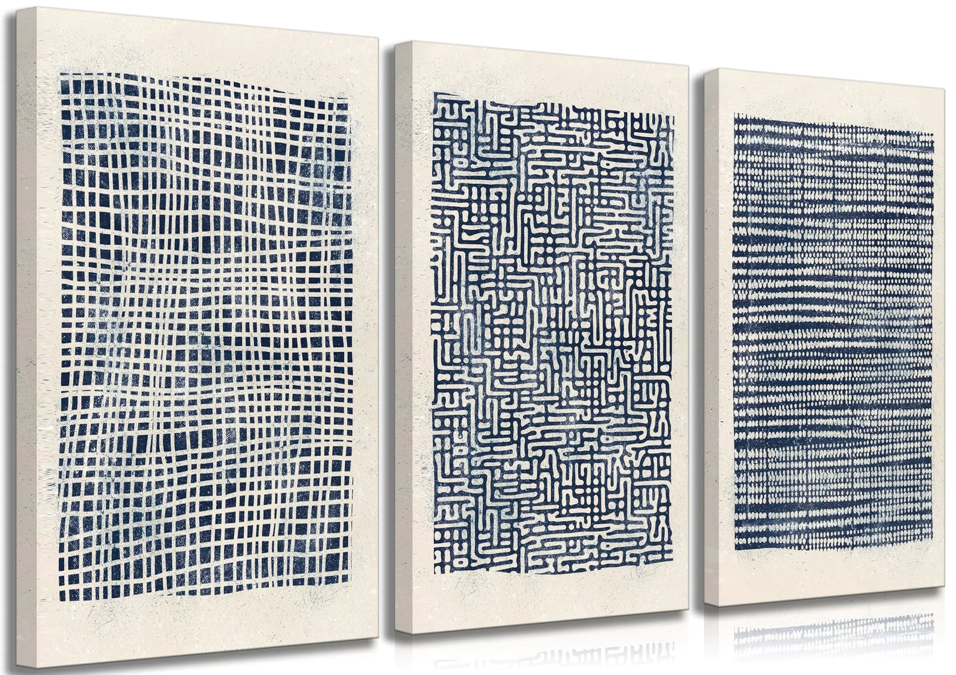 [【Neutral Abstract Navy Blue Wall Art】 The OKUDOLIT Modern Abstract Framed Navy Blue Canvas Wall Art Set includes three 16"x24" framed pieces. With geometric lines boho elements and a contemporary design this set blends mid-century aesthetics with modern elegance. The rich navy blue tones paired with neutral accents make these pieces ideal for enhancing bedrooms living rooms dining rooms bathroom corridors offices hotels cafes or even farmhouse-style decor. 【Perfect for Any Occasion】 This versatile wall art set is perfect for any setting whether updating a modern living space adding a boho touch to a room or infusing mid-century style into an office. The minimalist design and bold navy blue palette make it an excellent choice for cozy bedrooms stylish living rooms and chic dining areas. It also makes a thoughtful gift for birthdays housewarmings anniversaries and holidays. 【Beautify Your Wall】 Elevate your space with these abstract geometric prints. The blend of navy blue and neutral tones along with modern lines and subtle boho details adds depth and elegance to any room. Whether in a mid-century-inspired living room a chic dining area or a corridor this 3-piece set brings sophistication to your home or office. 【Superior Quality and Durable】 Crafted from premium canvas and framed with sturdy materials the OKUDOLIT wall art set is designed to last. Printed with color-stable inks these paintings maintain their vibrant navy blue and neutral tones ensuring long-lasting beauty and detail. 【Enjoy Art Enjoy Life】 Experience the elegance of abstract art with this stunning wall art set. Featuring geometric designs boho touches and a rich navy blue palette these prints bring calm and creativity to your living space. If you have any questions our customer service team is here to assist you.]