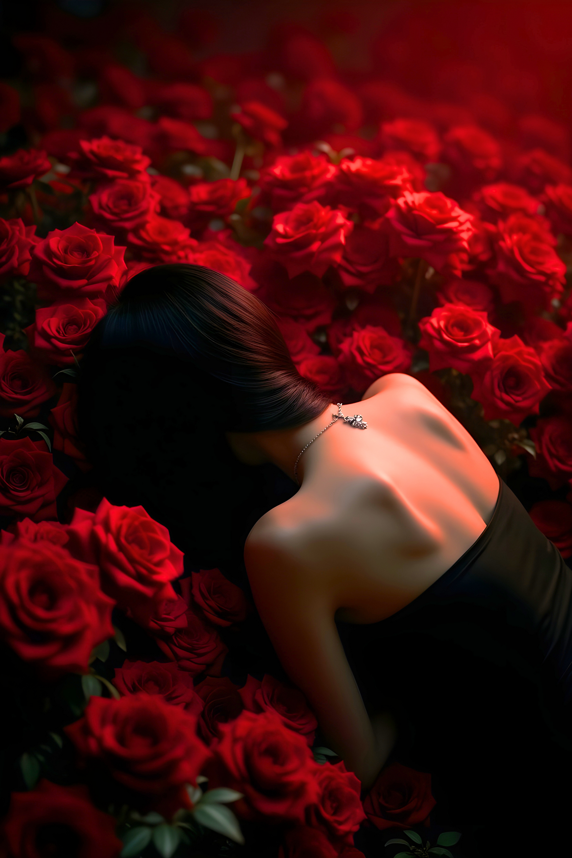 “Scent of Her Silence” captures the quiet intensity of a woman submerged in a sea of roses. It’s not just a wall art — it’s a whisper, a memory, a scent you can almost feel.